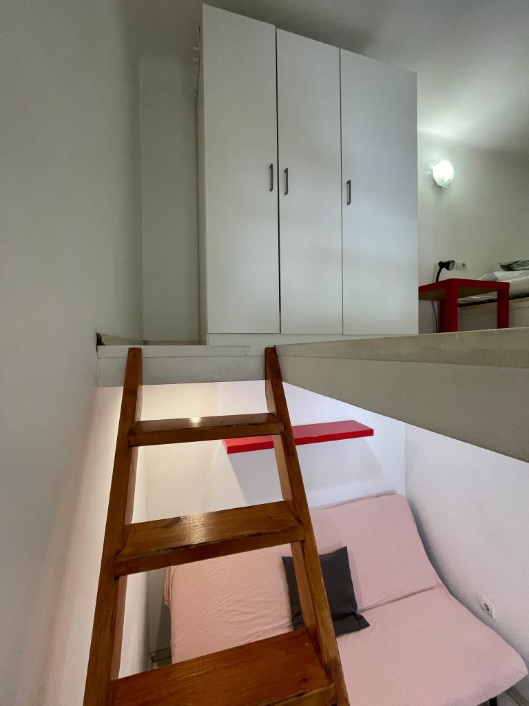 The rooms: Each has a double bed, a sofa bed, a closet a shelf stand and a study desk.